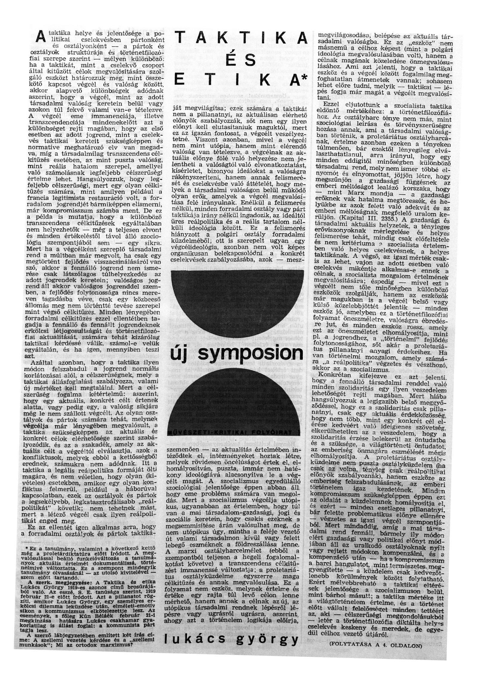 1965–1992 között megjelenő irodalmi, művészeti, kulturális, társadalmi folyóirat, melyben a fiatal korosztály újszerű és avantgárd irodalmi, képzőművészeti törekvései kaptak helyet. Főszerkesztői: Bosnyák István (1965/1–3), Fehér Kálmán (1965/4– 1967/28), Bányai János (1967/29–30– 1969/53), Tolnai Ottó (1969/54– 1971/80), Utasi Csaba (1972/81–1974/106–107), Danyi Magdolna (1974/108–1980/1977– 178), Sziveri János (1980/179–1983/216), Purger Tibor (1984/217–218–1989/277– 278), Beszédes István (1989/279–280– 1991/306–307), Bozsik Péter (1991/308– 309), Papp p Tibor (1991/ 310–311– 1992/323–324). Harmincéves fennállása alatt több lapszámát betiltották, sok támadás irányult szerkesztősége ellen. 1993-tól Symposin címen jelenik meg. Magyarországi "leágazása" az 1992-től Veszperémben megjelenő Ex Symposion.
